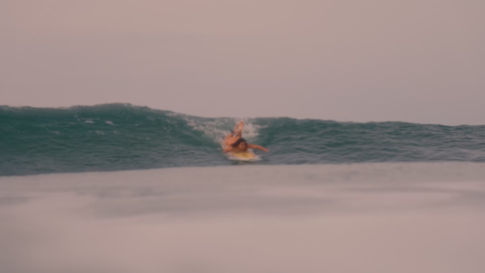 This suit so far has been great for surfing. I love how comfortable and cute it is. The top part stays put I’m 34c for reference. I bought a size small and would say it’s true to size a tighter fit is usually better for surfing.